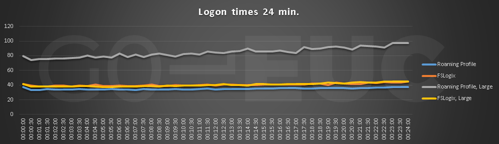 The impact on the logon times is huge when we compare the average logon time from the entire test.